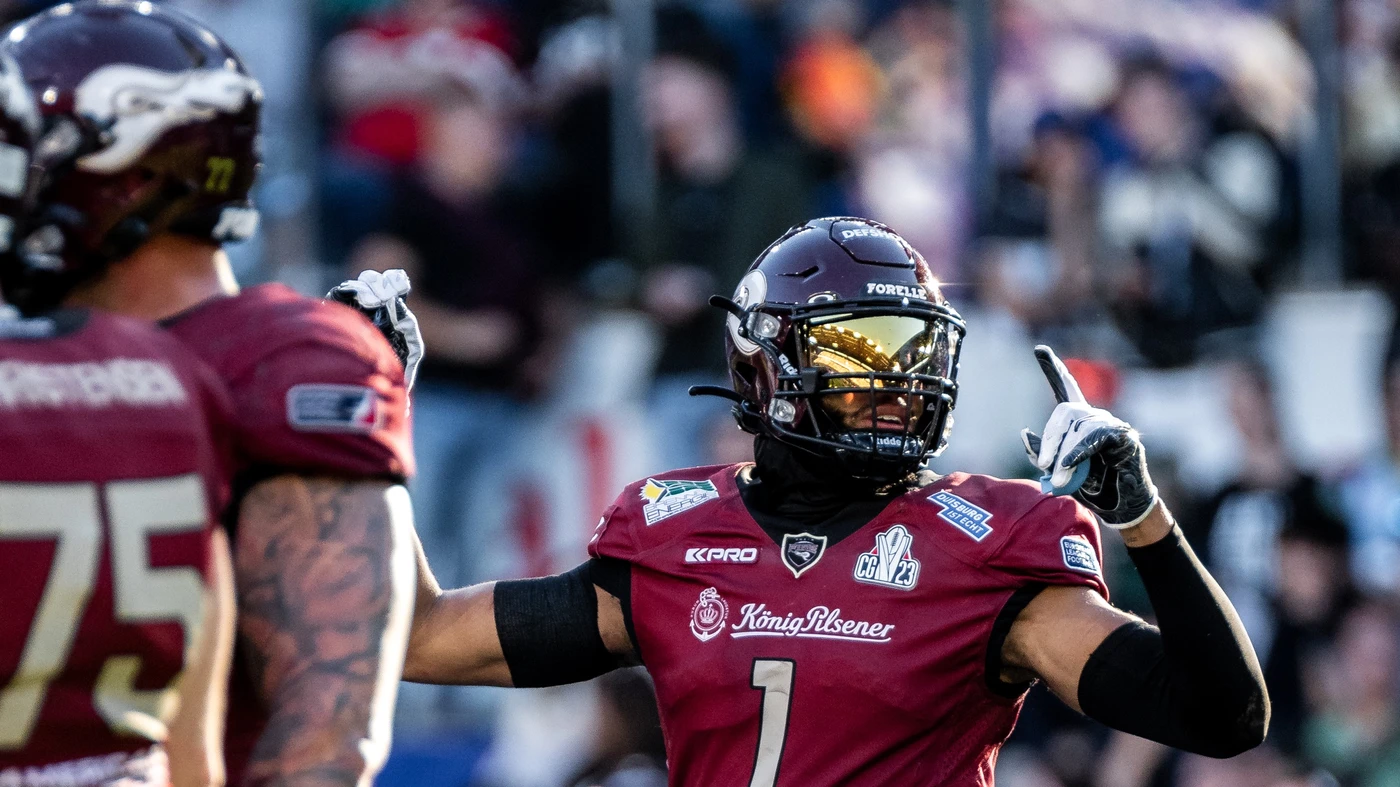 Last season’s standout performance with Rhein Fire is a testament to Mahoungou’s skills, where he compiled nearly 1000 receiving yards alongside eleven touchdowns in just ten games. This impressive feat was capped with a championship victory, a landmark in his flourishing career.