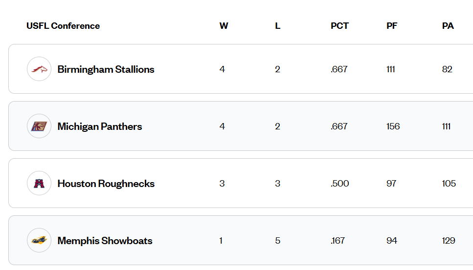 USFL Standings