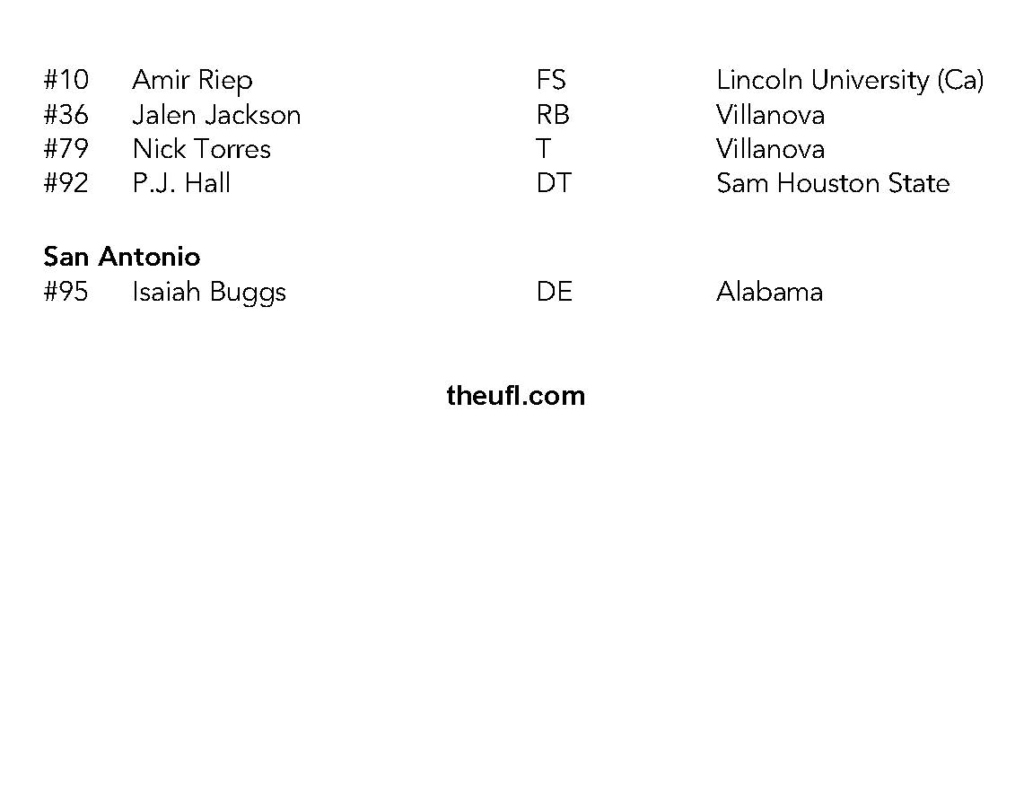 The United Football League released its latest personnel transactions on Thursday, with several notable moves across multiple teams. San Antonio added defensive line depth with a former SEC standout, while Memphis bolstered its roster with four activations including offensive playmakers from UTEP and Slippery Rock.