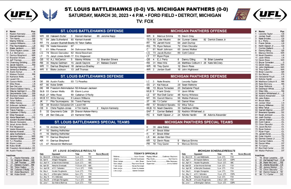 The Battlehawks begin their season at Ford Field taking on the Michigan Panthers who are fresh off their playoff berth in 2023.